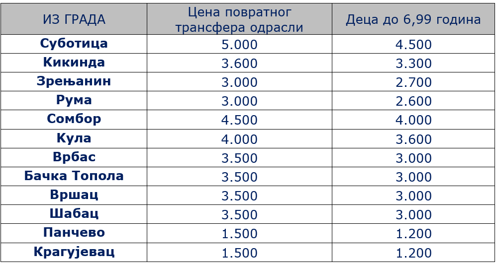 ЦЕНЕ КОНЕКТИВНИХ ТРАНСФЕРА СЕЗОНА 2026.
